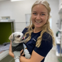 Line arbejder som klinikassistent og Social Media ansvarlig hos Dyrlæge Mikkelsen. Hun har en uddannelse inden for konceptudvikling og projektledelse, hvor hun bruger sine digitale kompetencer til at brande og lave fede videoer til og om klinikken – med stor succes.